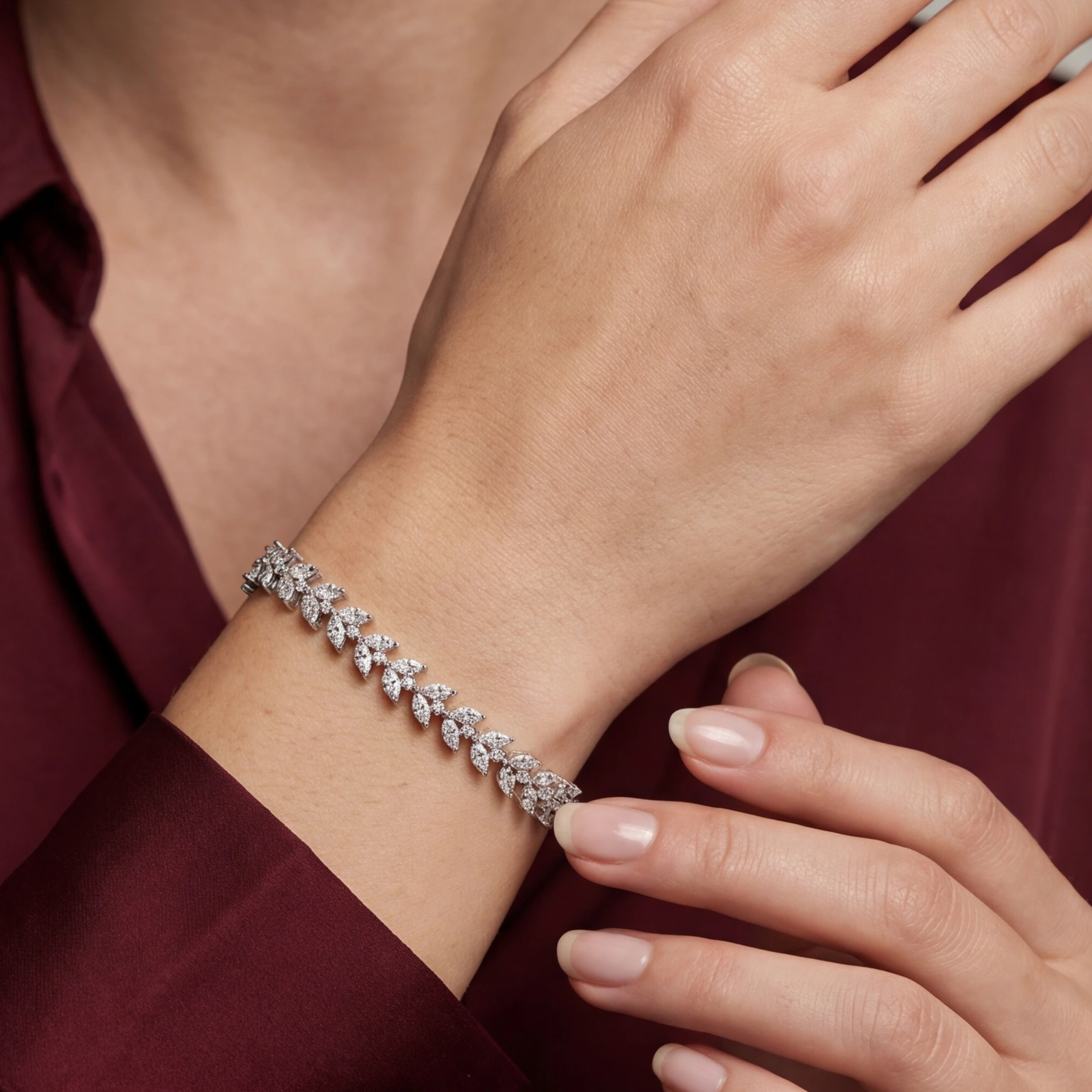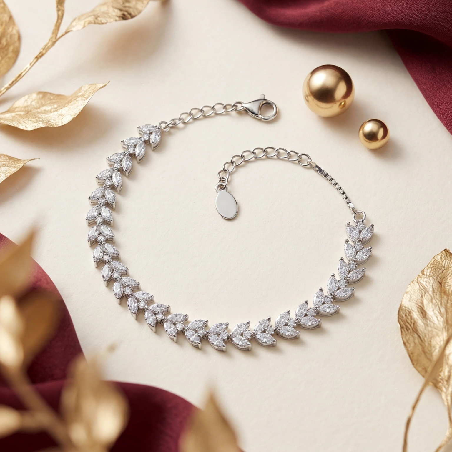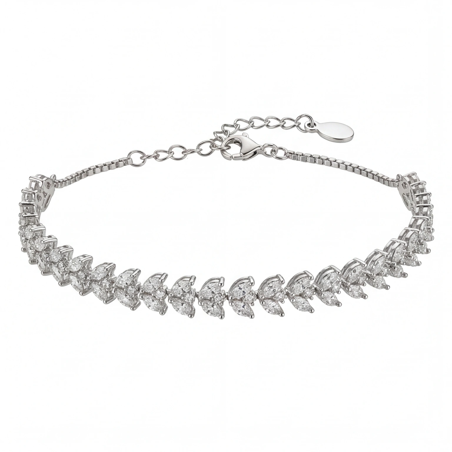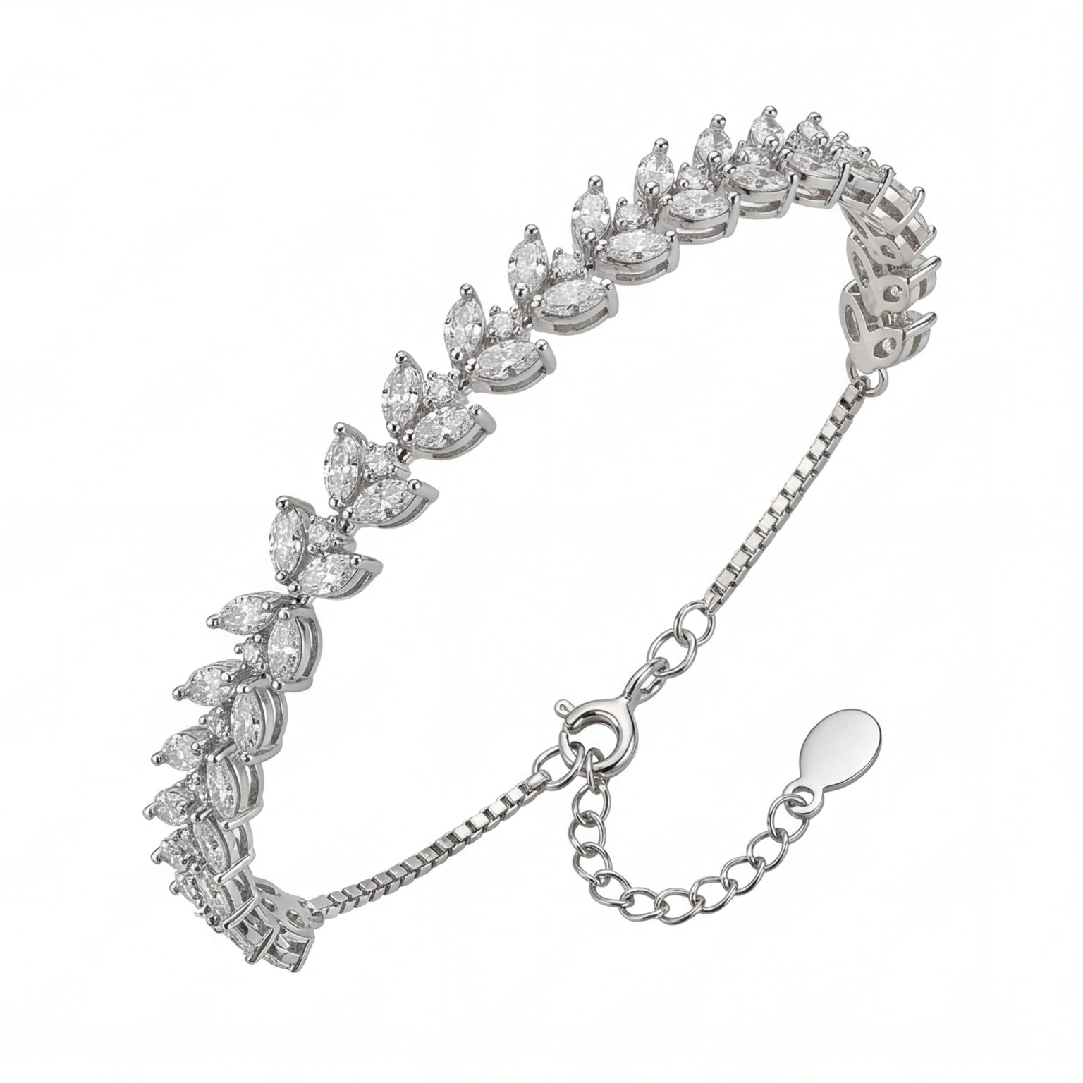Row upon row of marquise-cut CZs arranged in a cascading leaf formation β€” the Feuille is nature distilled into silver. It moves with you, catches light from every angle, and carries the quiet drama of something that looks far more precious than it lets on. Bridal, festive, or simply for a Tuesday when you want to feel extraordinary.