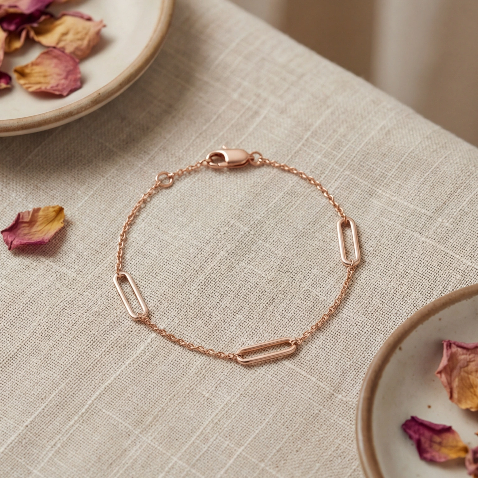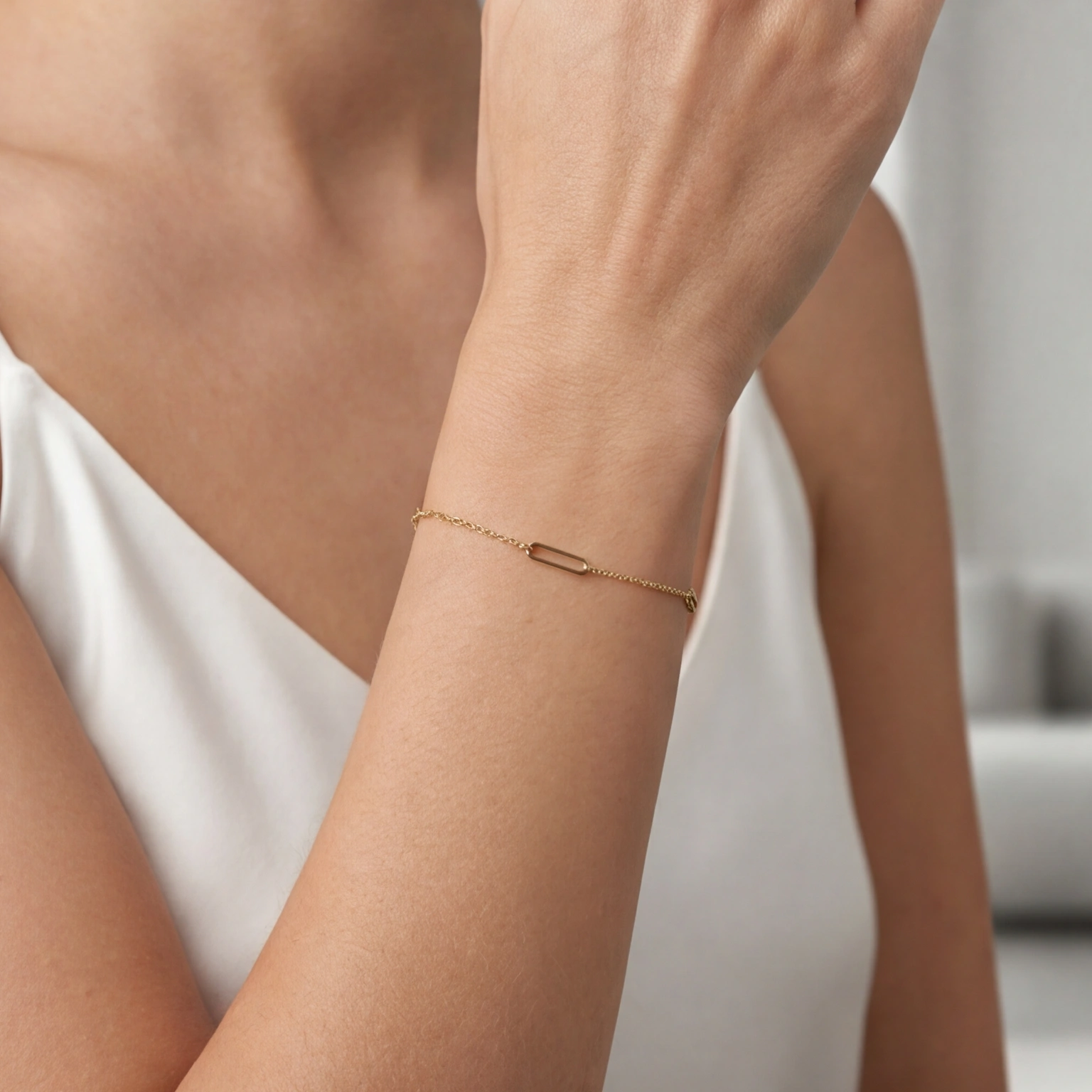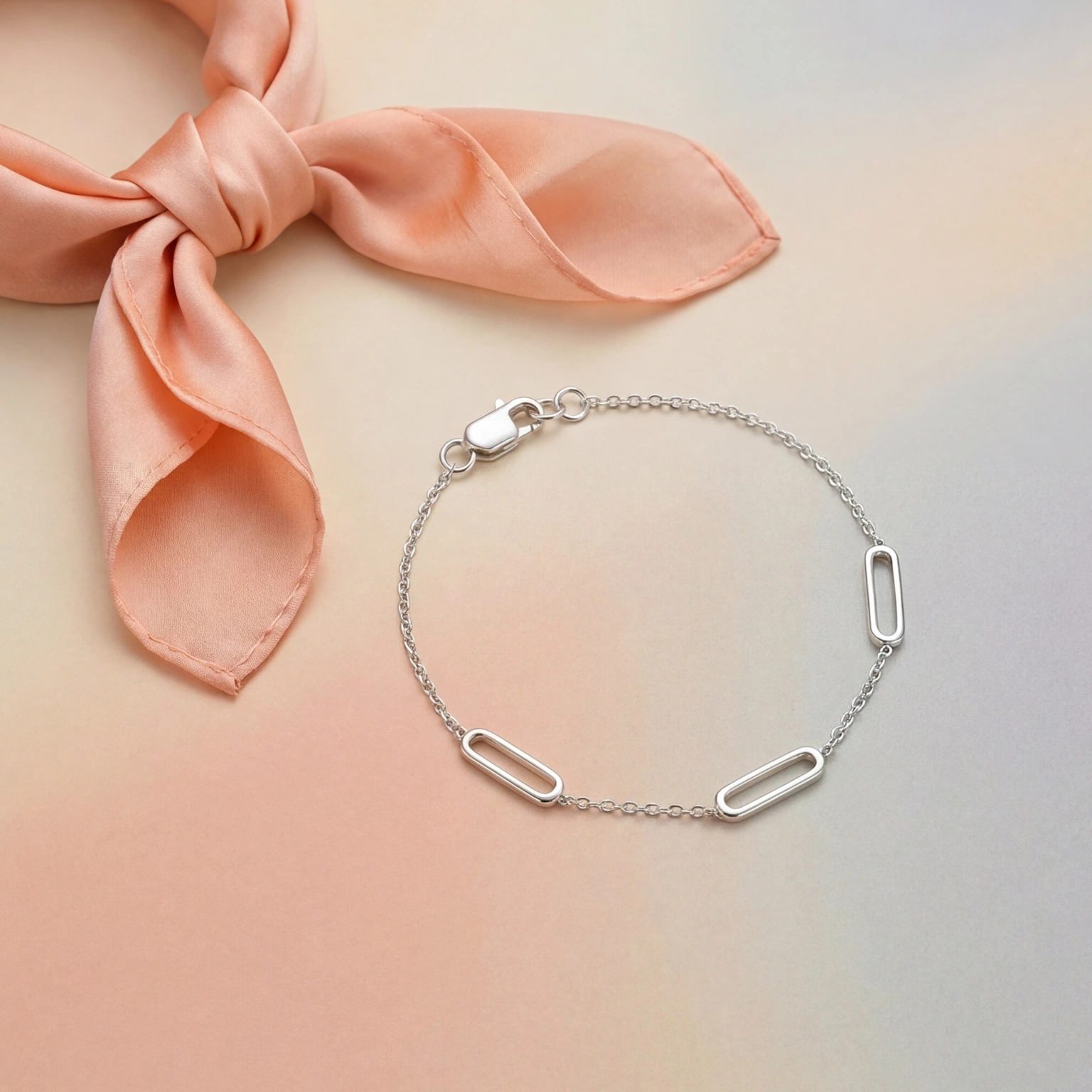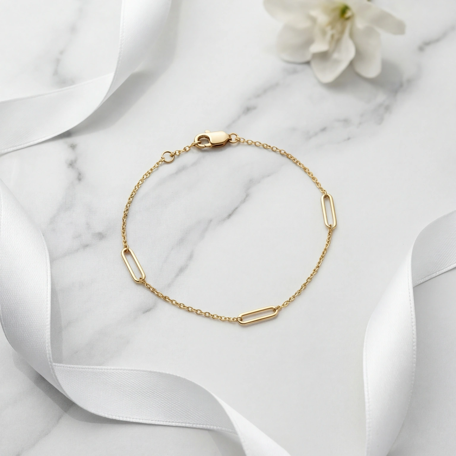 A simple chain bracelet with seamlessly curved oval links for a pure modern design. Easy to carry and adjustable, it brings a soft form to daily looks while appearing effortless and attractive. Perfect for layering with other bracelets or wearing alone to make a modest impact.
