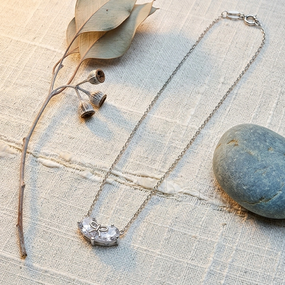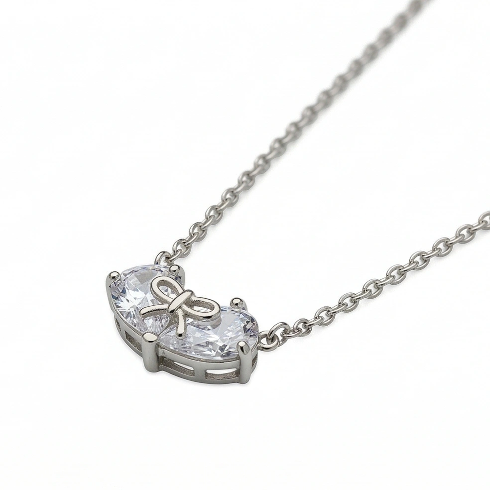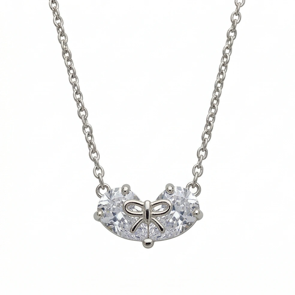 A delicate twin-heart silhouette finished with a subtle bow, Clara