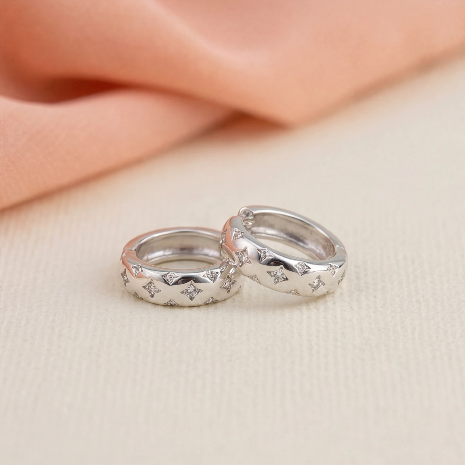 Mini huggie hoops made with little star-shaped stone settings for a delicate shine. The smooth finish and perfect fit make them ideal for everyday use, while the design adds uniqueness to a standard hoop style.