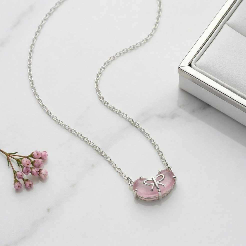 You're viewing: Isla Pink Bow Heart Necklace Original price was: ₹3,250.00.Current price is: ₹2,760.00.