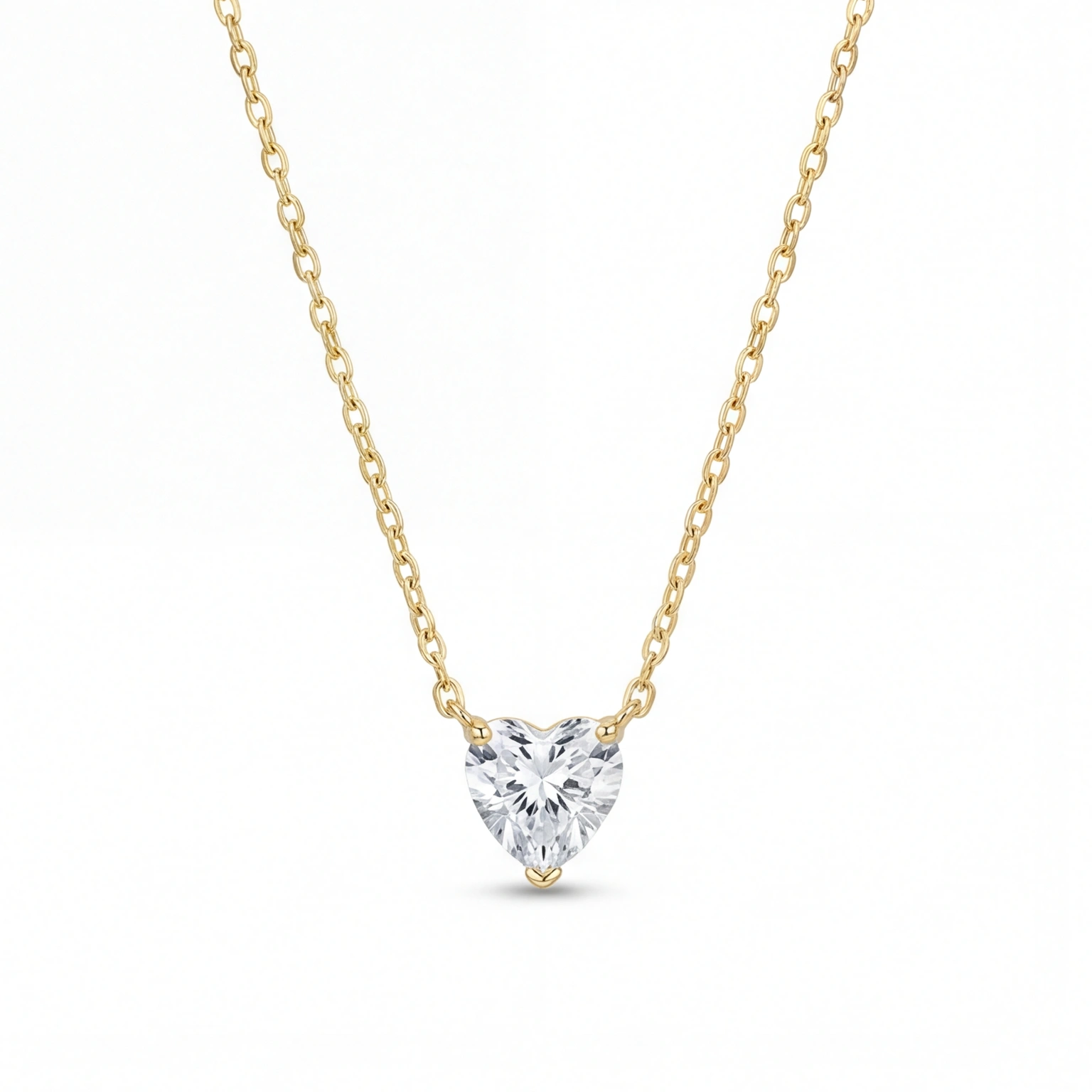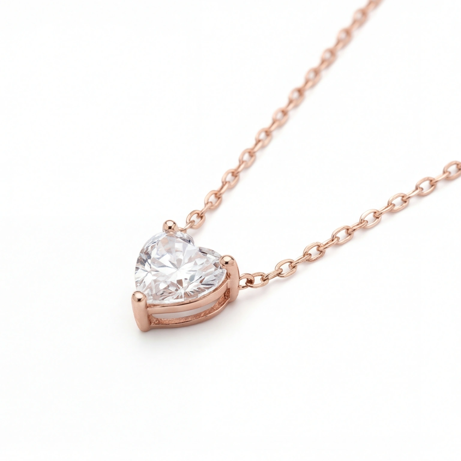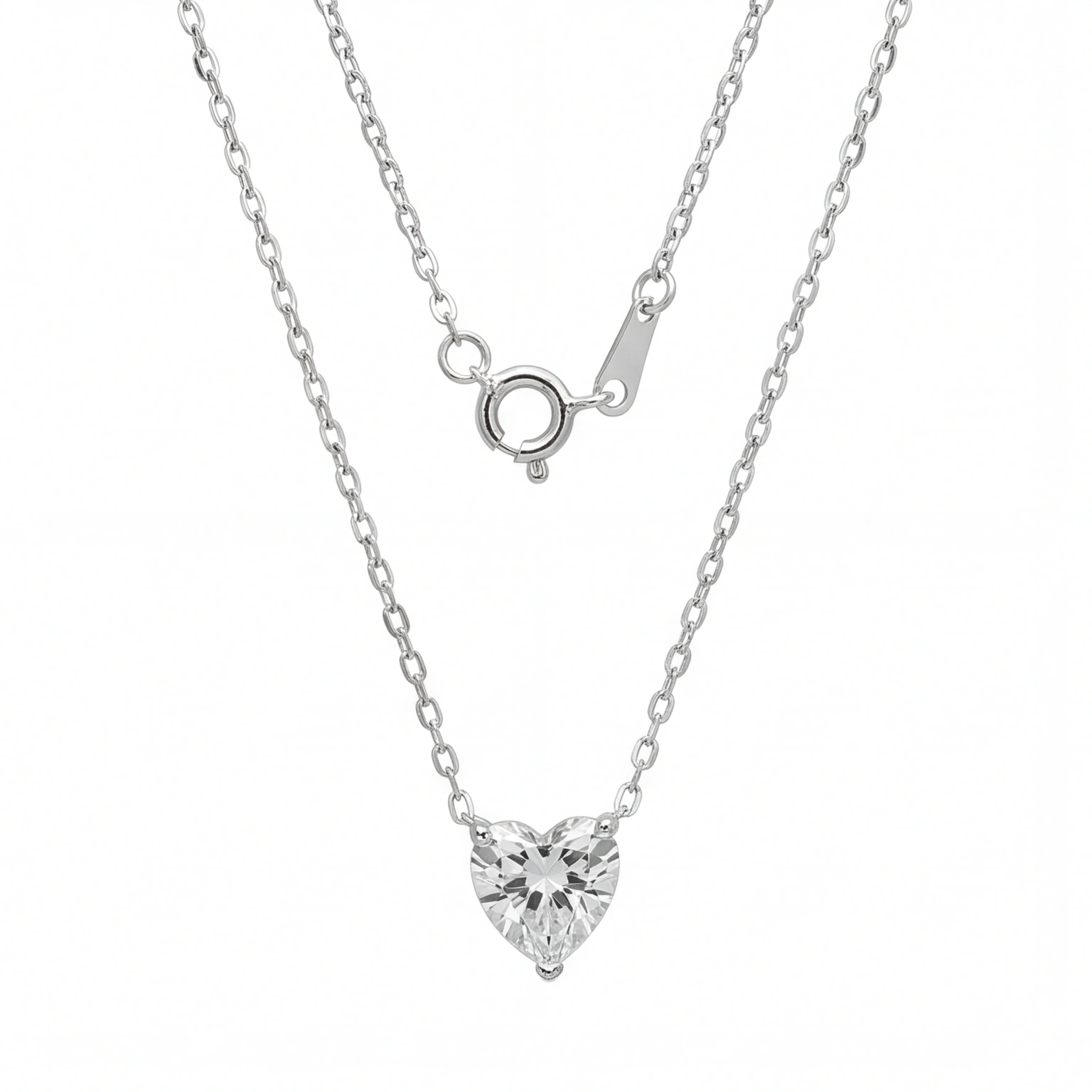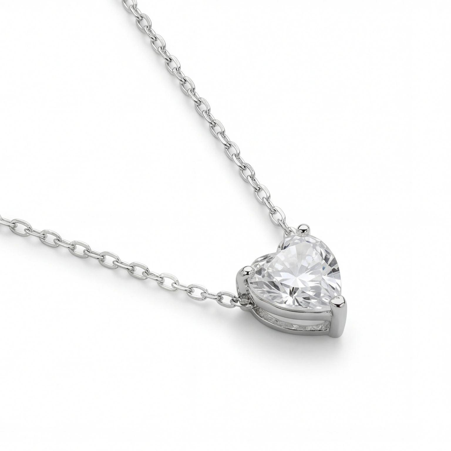 A heart-shaped solitaire pendant on a slender chain for a sleek, trendy look. The design is easy to carry and the clean setting adds to the sparkle of the stone. Perfect for subtly upgrading your outfit with a romantic touch.