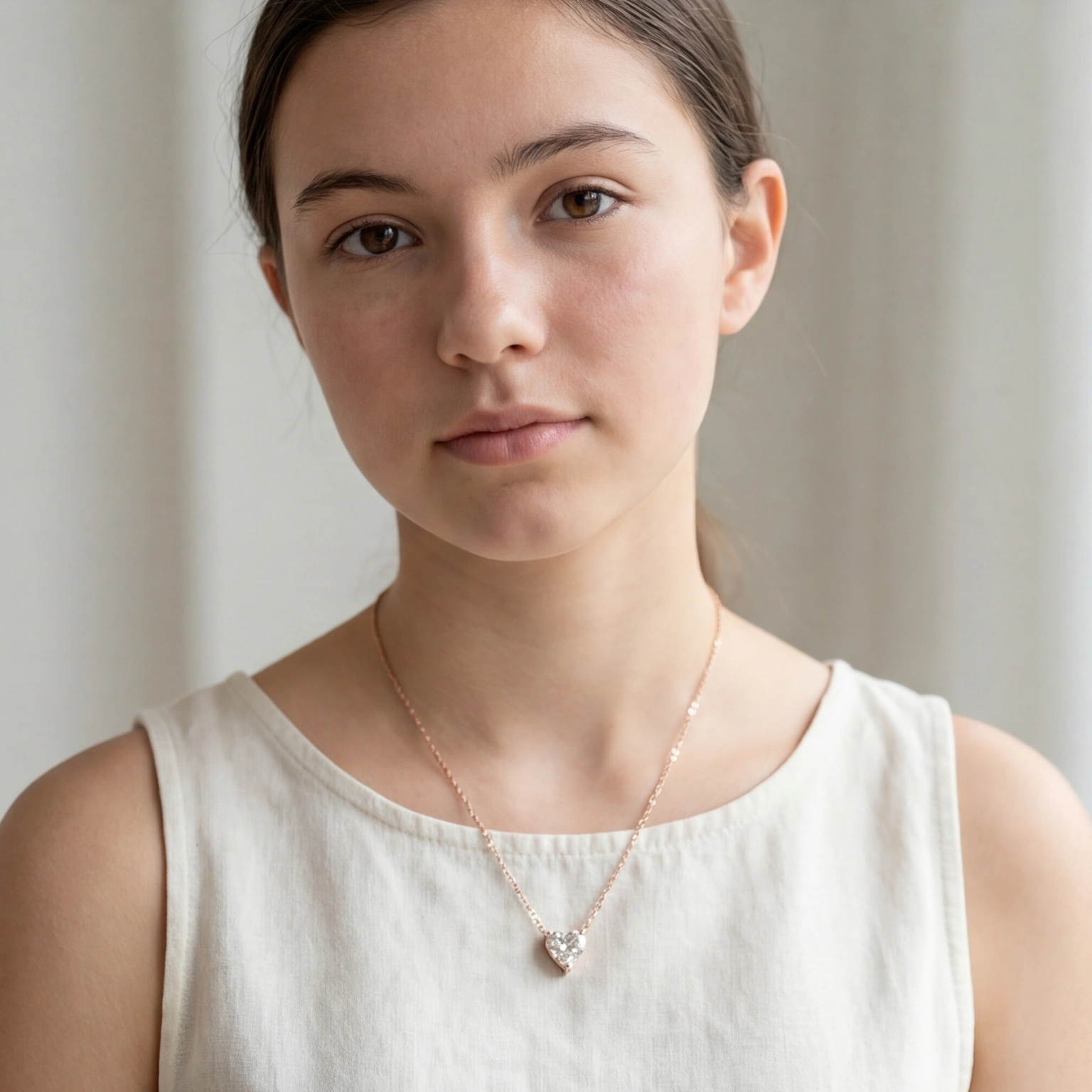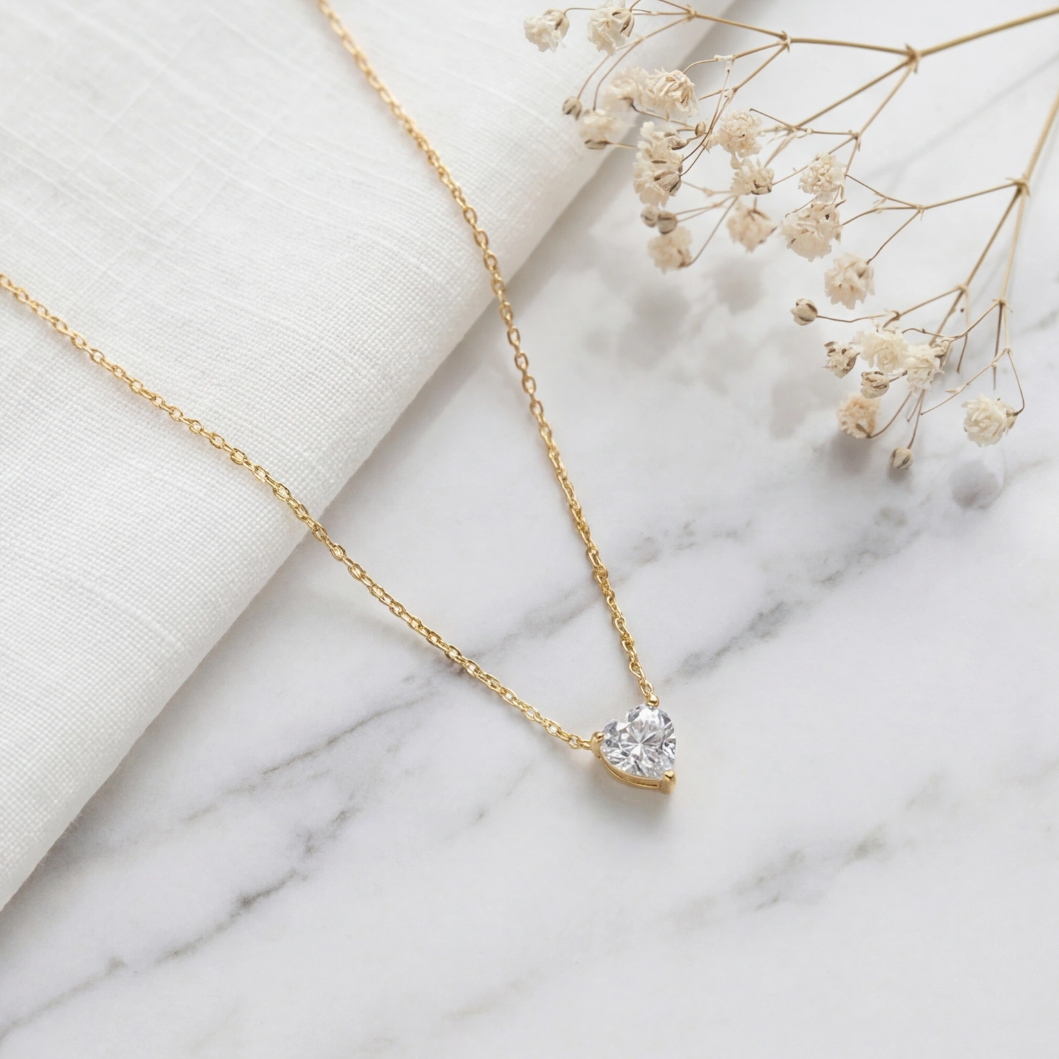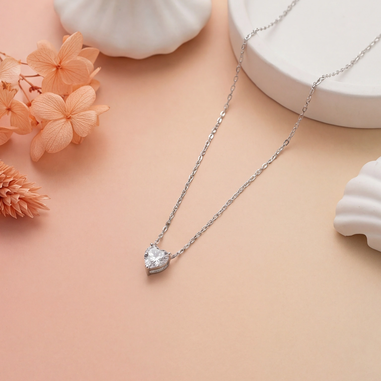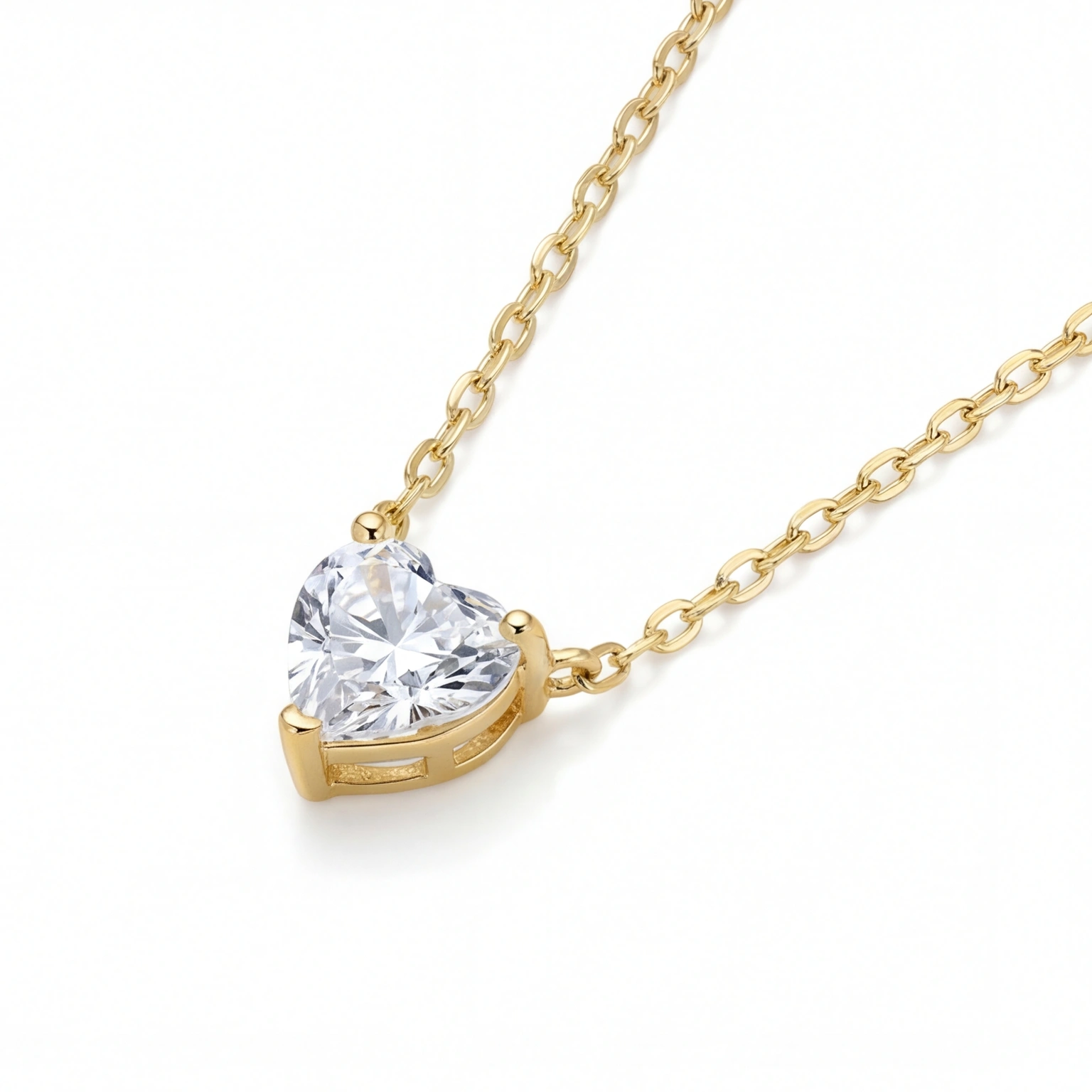 A heart-shaped solitaire pendant on a slender chain for a sleek, trendy look. The design is easy to carry and the clean setting adds to the sparkle of the stone. Perfect for subtly upgrading your outfit with a romantic touch.