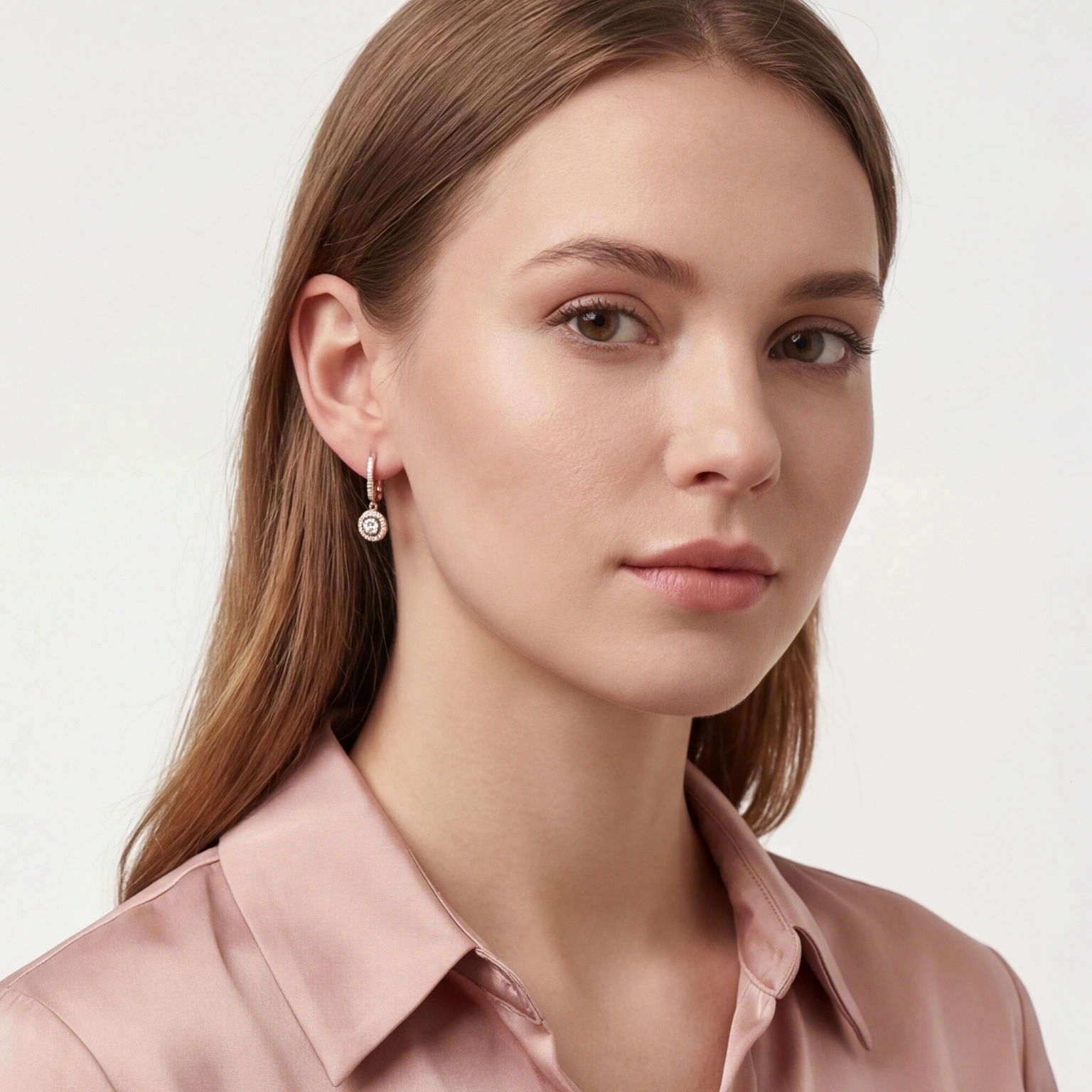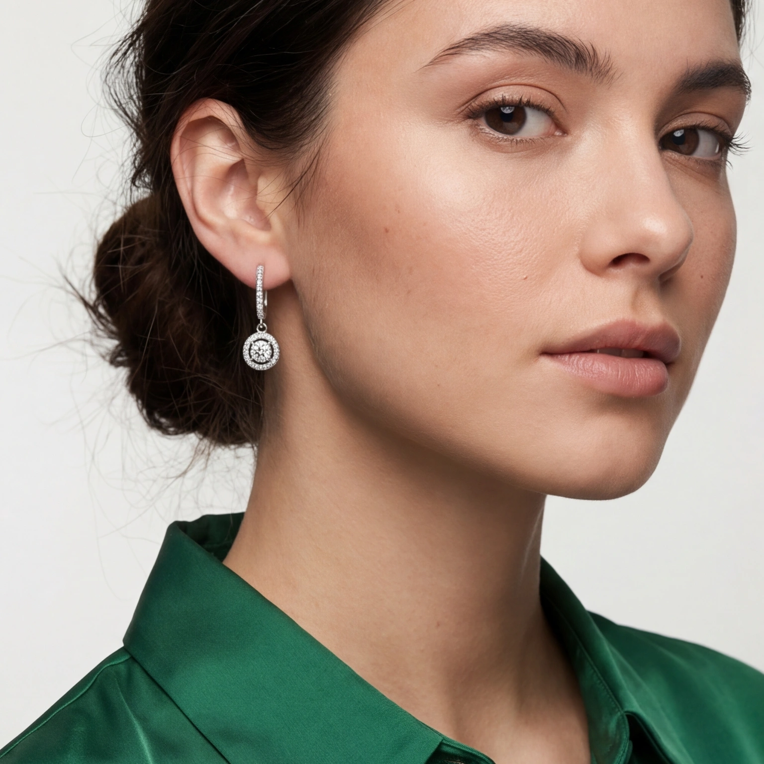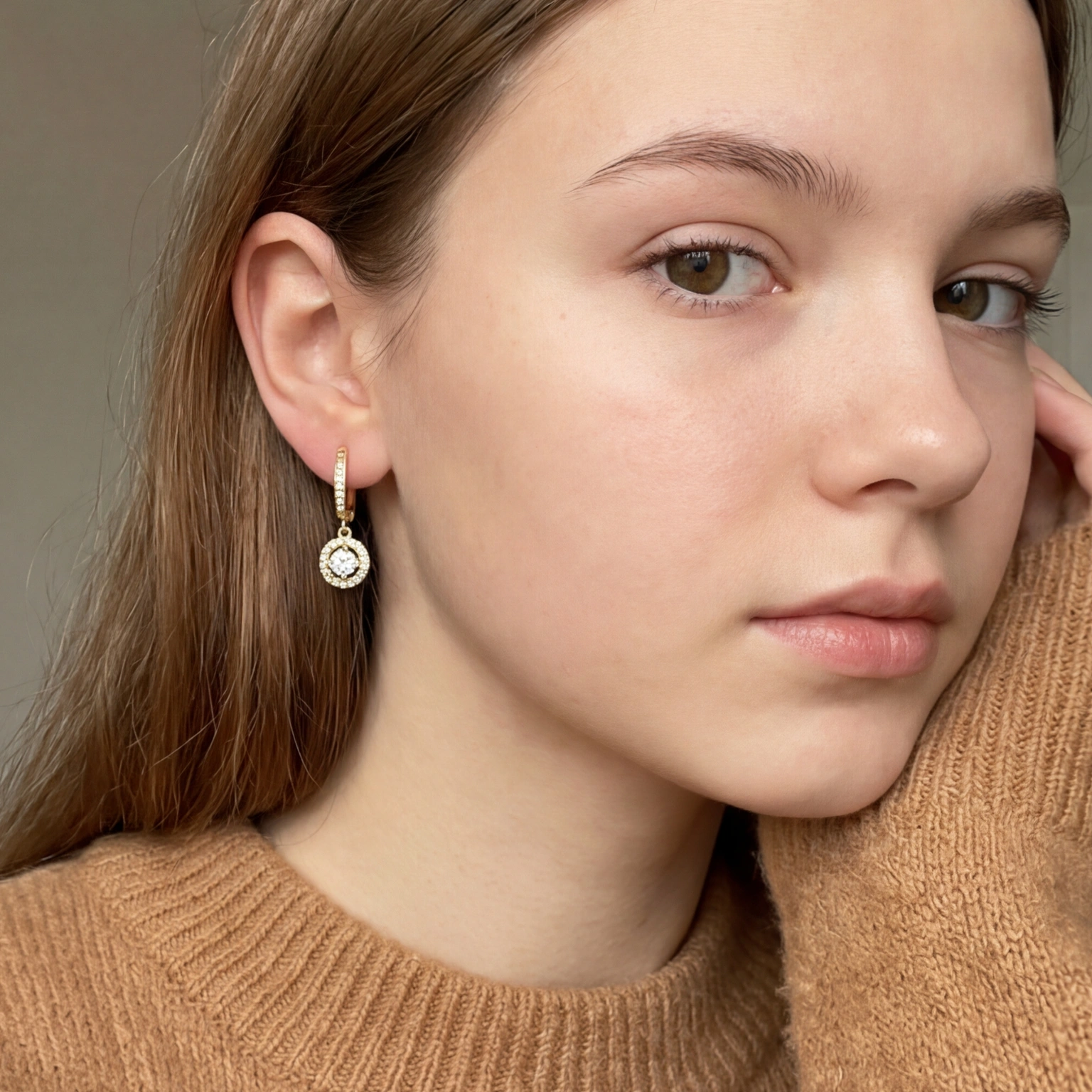For extra sparkle, the hoops highlight with a round halo charm. All-day comfort is guaranteed by the lightweight construction, while the pavé design adds to the shine.
