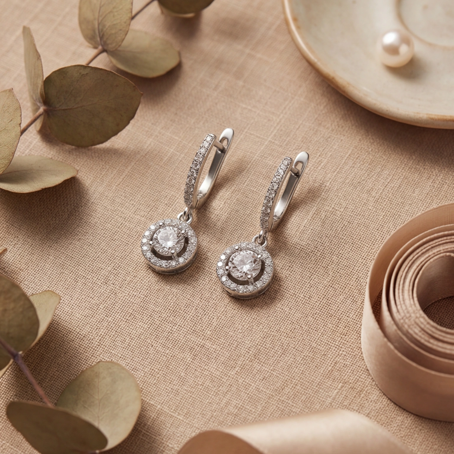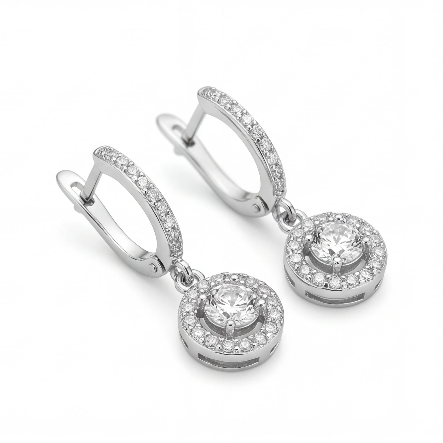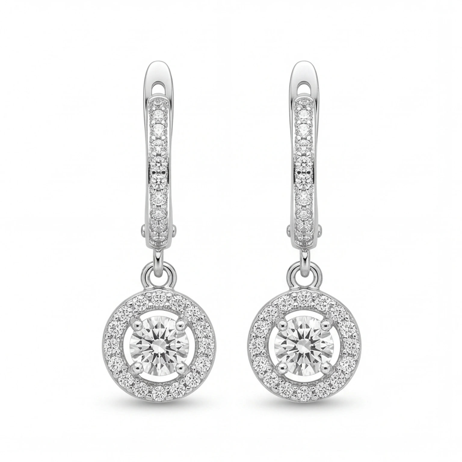 For extra sparkle, the hoops highlight with a round halo charm. All-day comfort is guaranteed by the lightweight construction, while the pavé design adds to the shine.