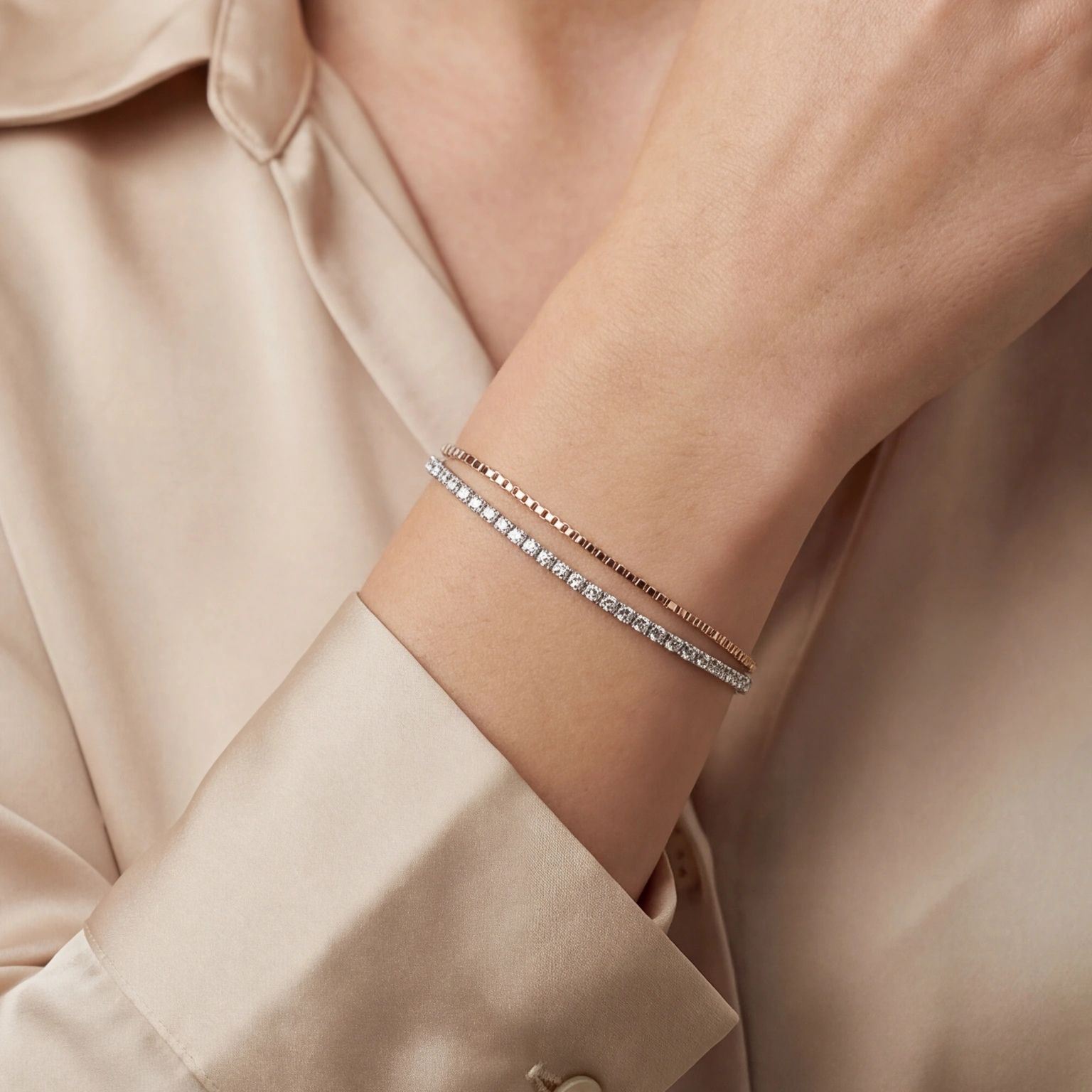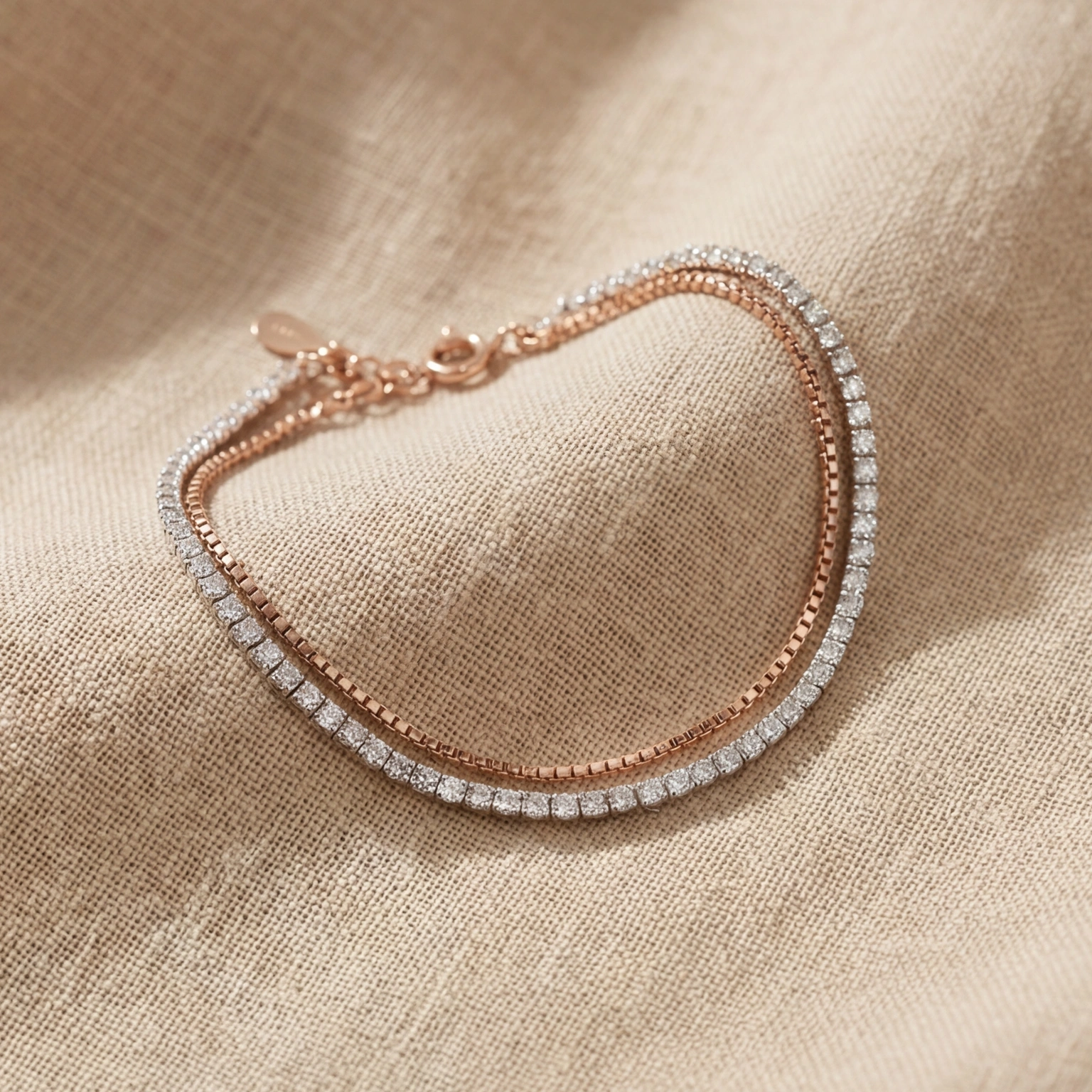 You're viewing: Paris Dual Tennis Bracelet Original price was: ₹5,370.00.Current price is: ₹3,270.00.