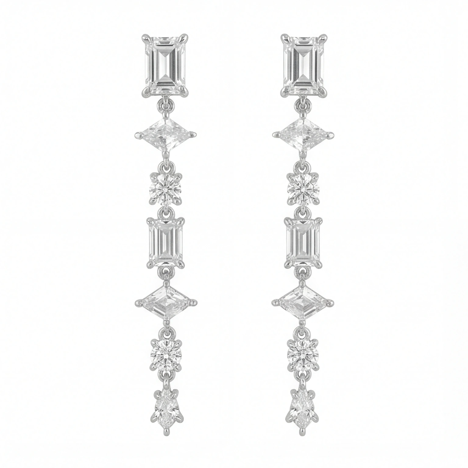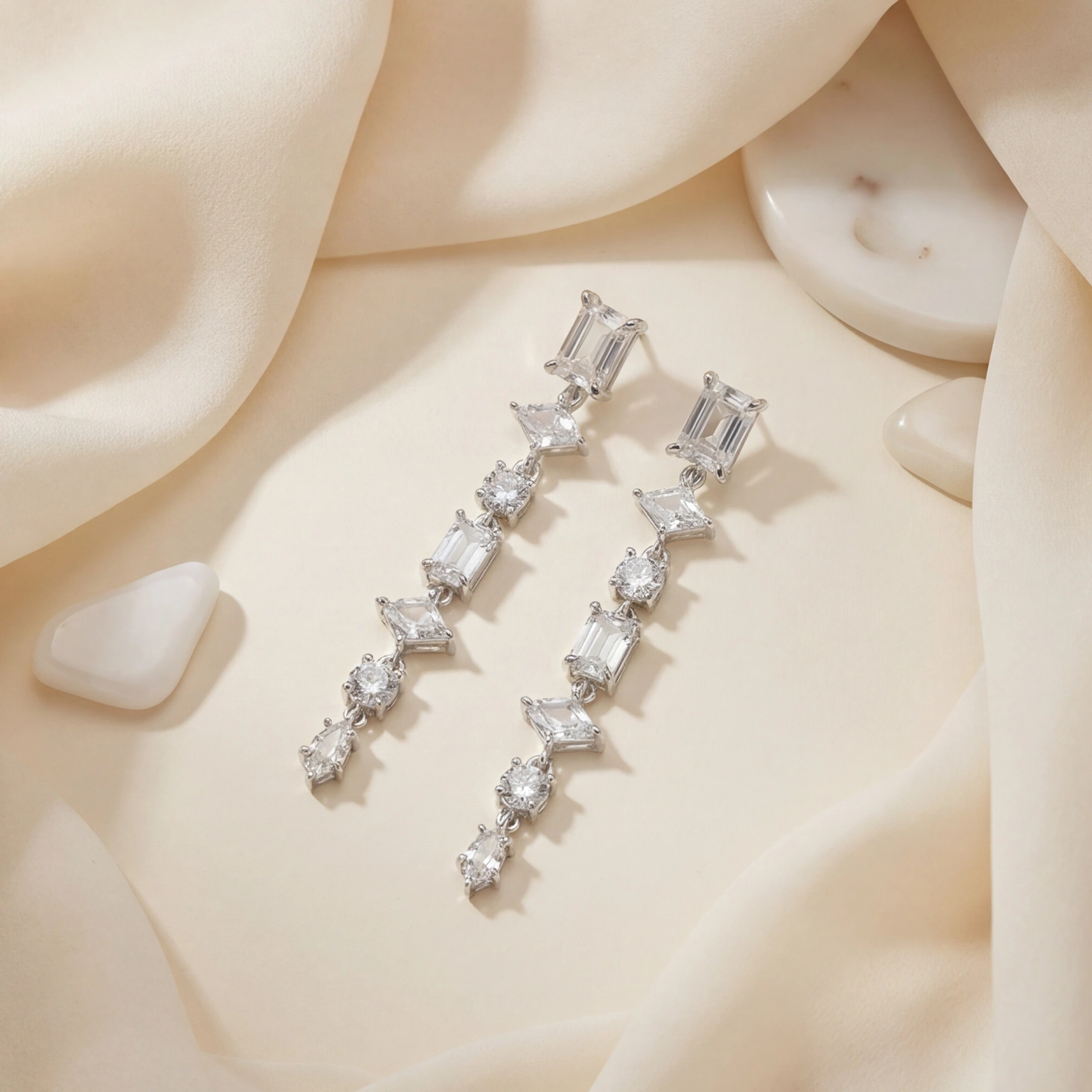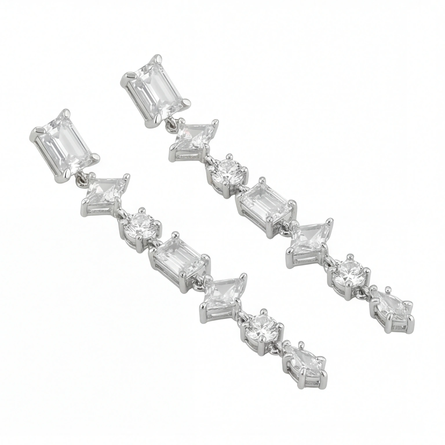 Exquisite drop earrings with a series of stone cuts set vertically. The lightweight movement adds shine without being overbearing, making them ideal for weddings, events, and elevated evening styles.